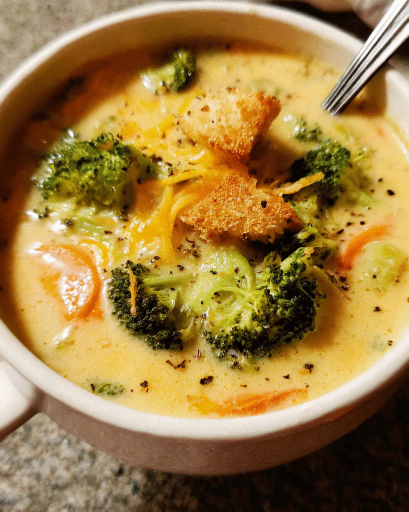 A creamy and comforting broccoli cheddar soup made with fresh vegetables and rich melted cheese.