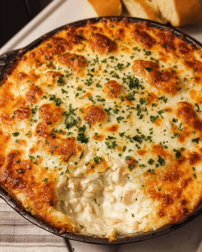 Cheesy Chicken Alfredo Dip: Creamy, Baked Party Favorite