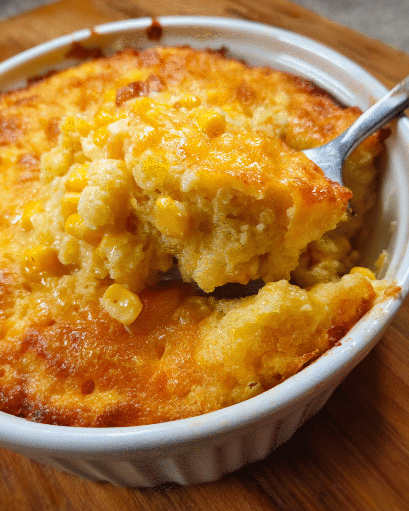 The combination of whole corn and creamed corn creates a layered texture that feels both hearty and smooth. Each bite carries bursts of sweetness balanced by a soft, custard-like base that holds everything together beautifully.