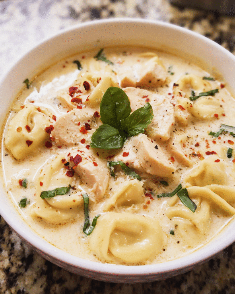 Chicken Alfredo is already a comfort classic, but transforming it into a soup makes it even more versatile. Instead of heavy pasta, the soup format feels lighter while still delivering on richness. The addition of diced chicken and tortellini provides substance, making it more satisfying than a typical creamy soup—and far more exciting than your average chowder.
