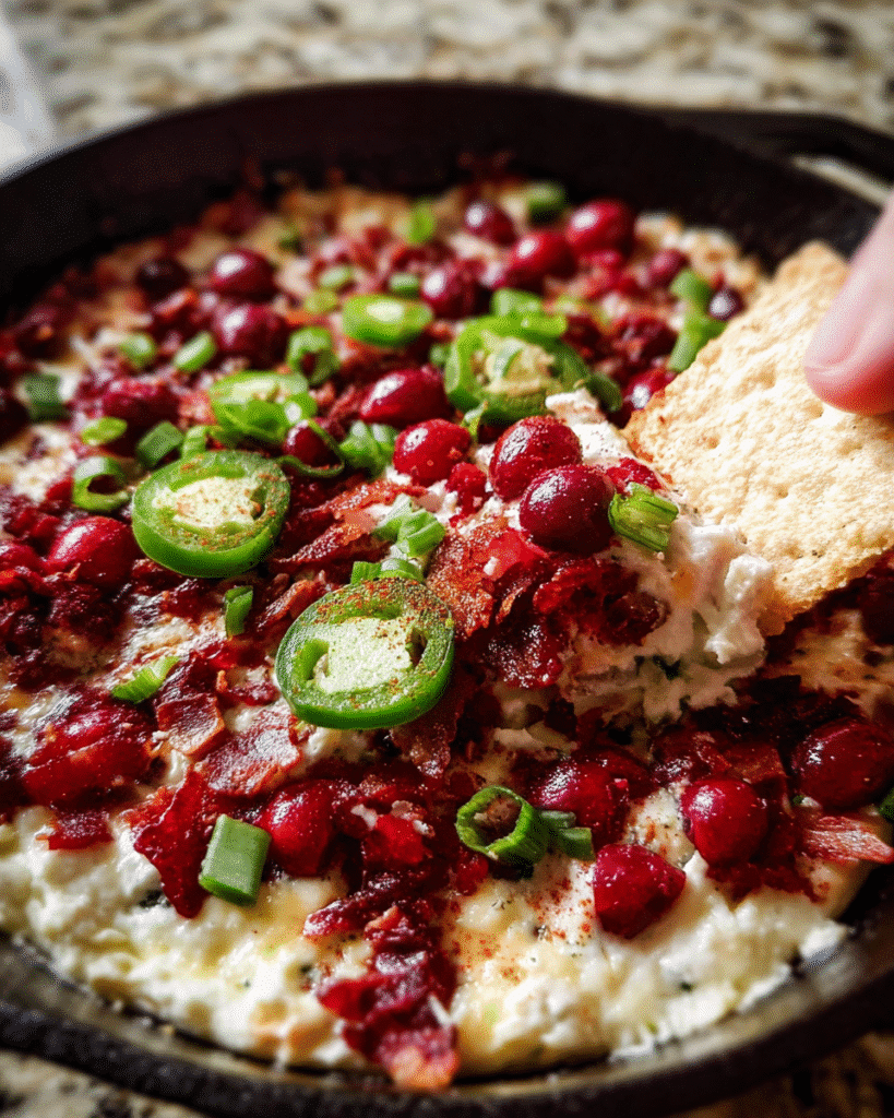 The combination of creamy cheese, bright cranberries, and gentle jalapeño heat creates a bold yet balanced flavor experience. It feels festive, comforting, and just a little unexpected.