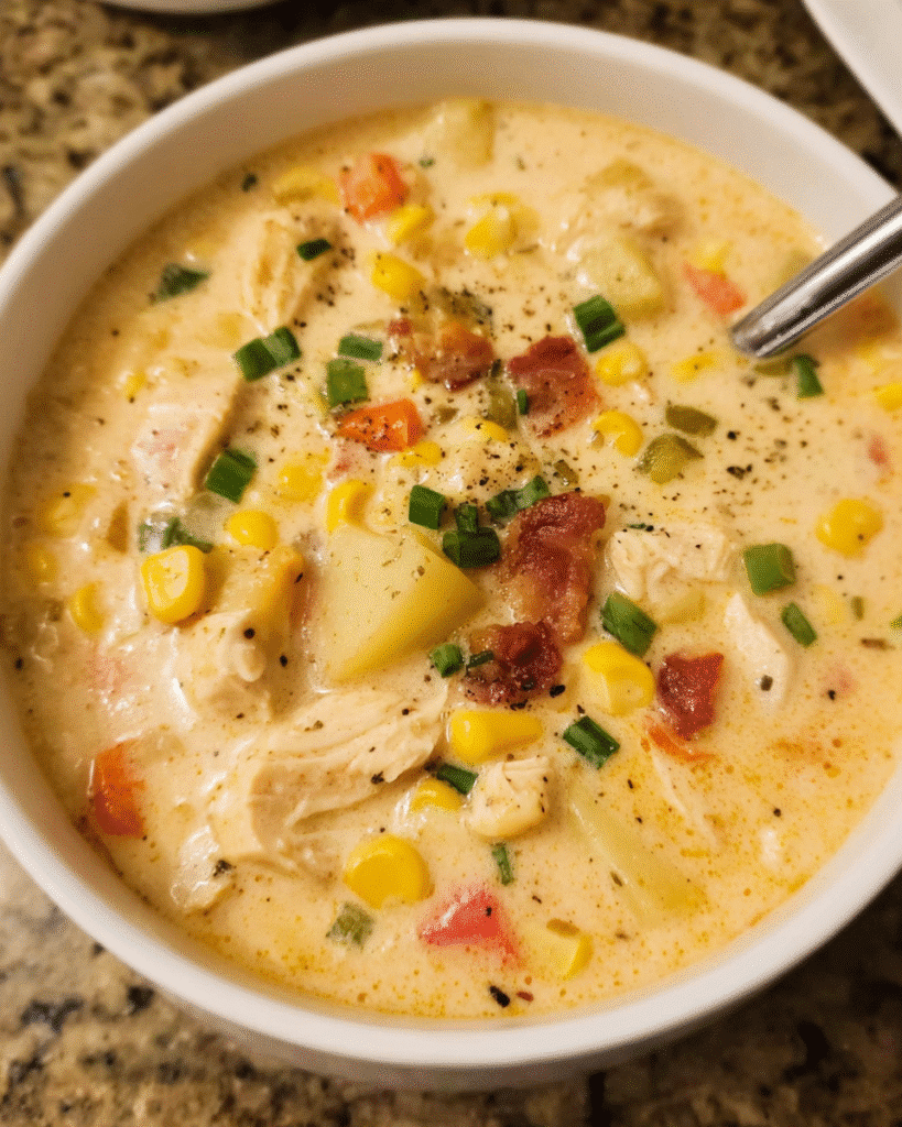 What makes this version so special is its balance: tender chicken, sweet corn, and buttery potatoes swim in a silky broth enhanced by garlic, peppers, and just the right touch of spice. One pot. One cozy evening. And leftovers that only get better the next day.