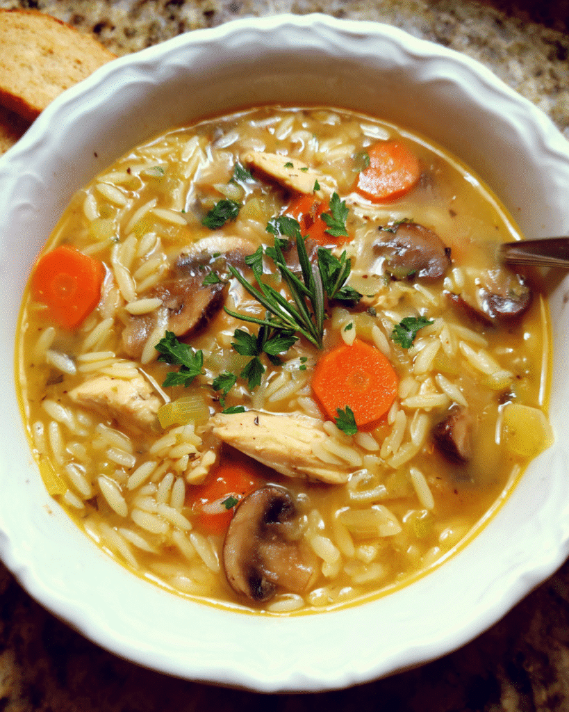 Many creamy soups rely on cream to do the heavy lifting, but here, it’s the interplay of herbs, aromatics, and mushrooms that bring the depth. A good homemade or high-quality store-bought broth adds a huge boost, and the natural richness from the chicken and orzo ties it all together.