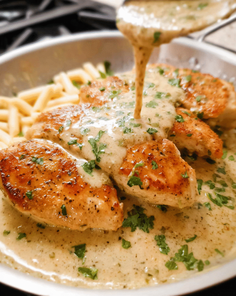 A rich and comforting skillet chicken dish with garlic, butter, cream, and Parmesan.