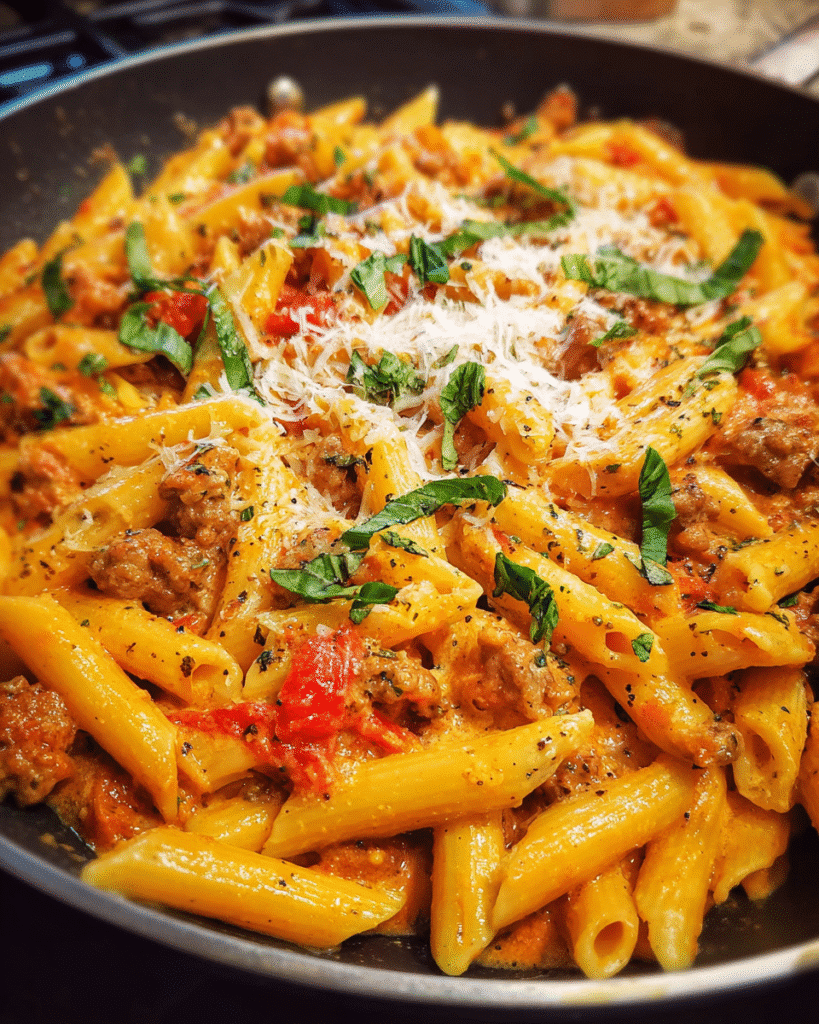 There is something instantly satisfying about a creamy sausage pasta skillet bubbling away on the stove, filling the kitchen with warmth and rich aroma. This dish brings together tender pasta, savory sausage, and a velvety tomato cream sauce that clings to every bite. It feels indulgent without being complicated, making it perfect for both busy weeknights and relaxed dinners at home. Once you try it, this skillet meal quickly becomes part of your regular rotation because it delivers comfort, flavor, and simplicity in one pan.