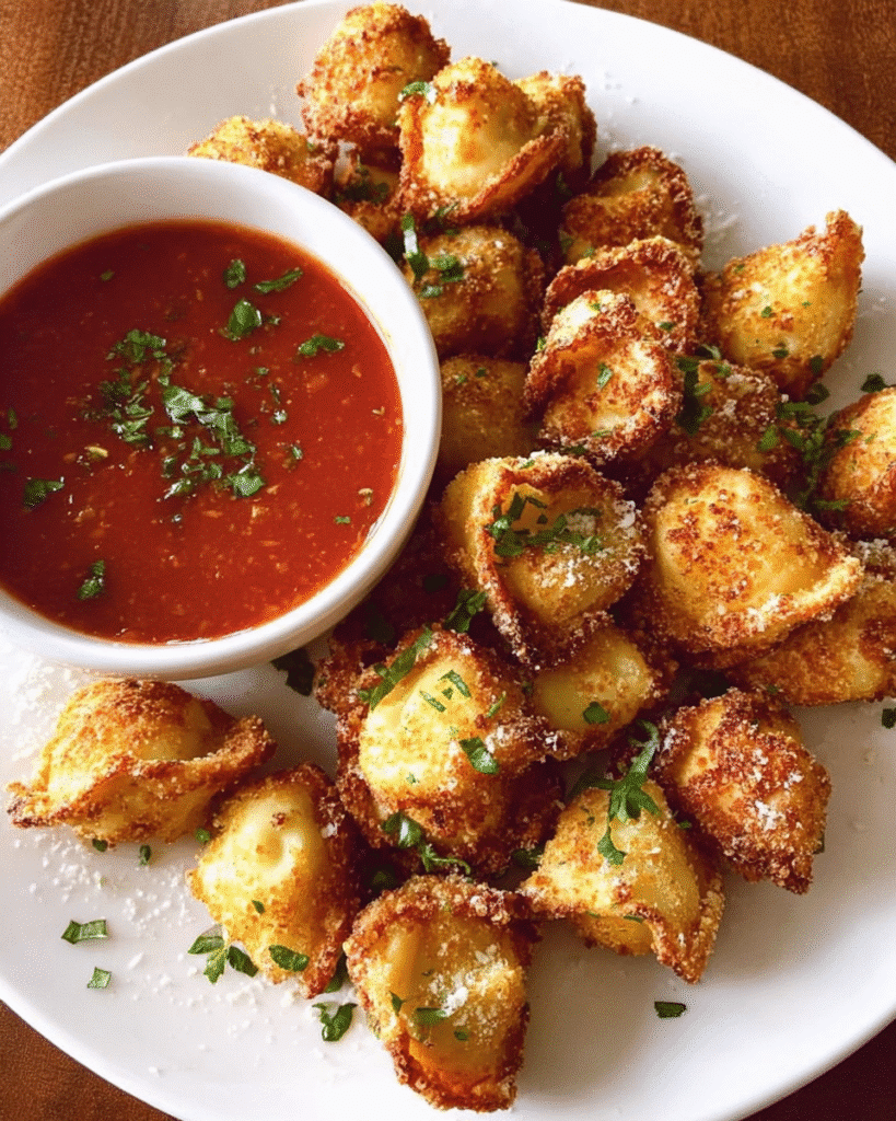 Crispy fried tortellini coated in seasoned breadcrumbs and served with a rich homemade tomato dipping sauce.