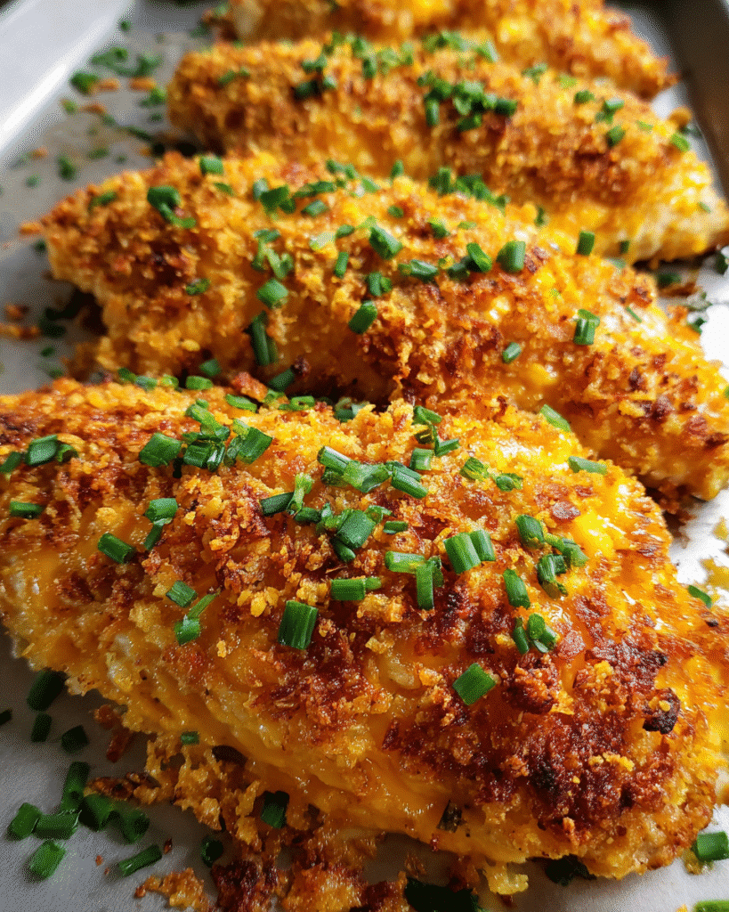As the chicken bakes, the topping becomes golden and crisp. Cheddar melts into the toasted breadcrumbs, creating a savory crust that locks in moisture and delivers a satisfying bite every time.