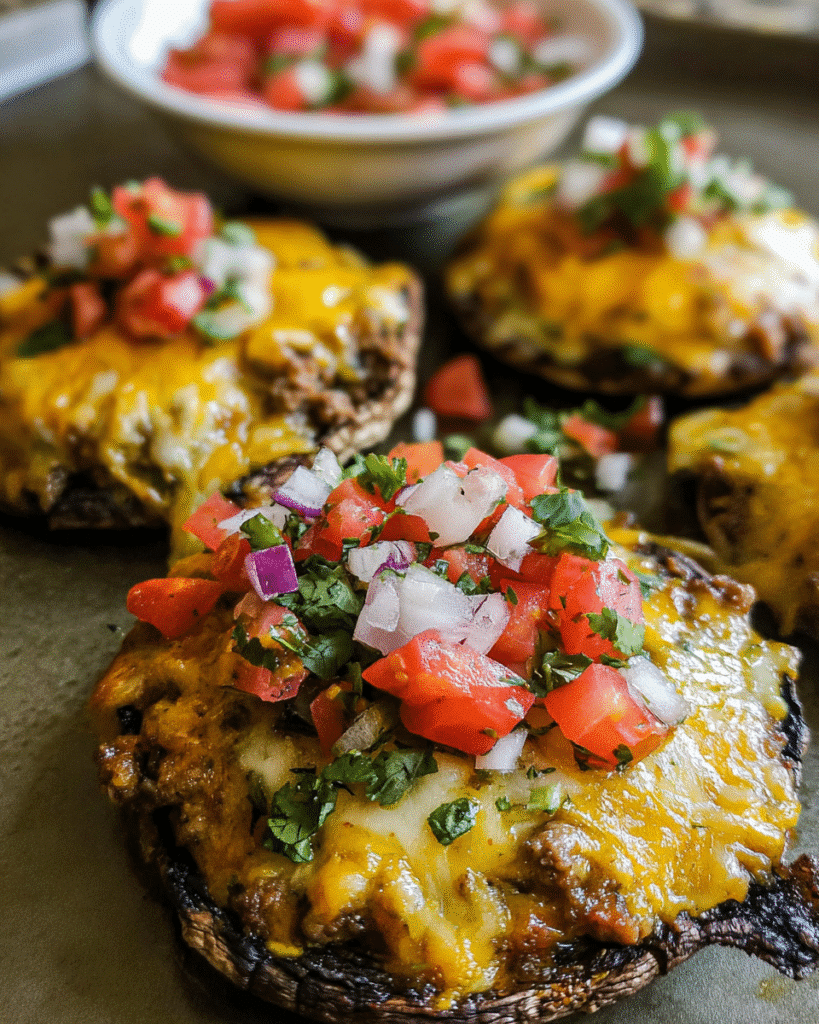 Mexican stuffed portobello mushrooms often include similar elements such as seasoned meat, cheese, and fresh salsa. This recipe embraces those classic flavors while keeping preparation simple and approachable for home cooks.